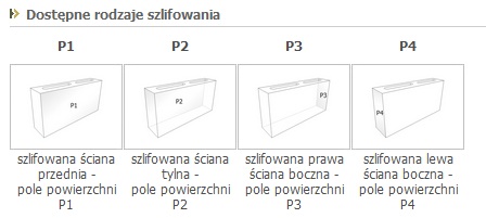 Istnieje możliwość szlifowania kilku ścian jednego elementu w dowolnej konfiguracji np.: P1+P2, P1+P4 itp.